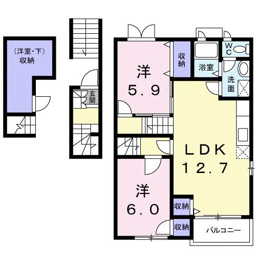 | 間取り詳細 | 洋室6 洋室5.9 LDK12.7 | 専有面積 | 65.14㎡ | ||
