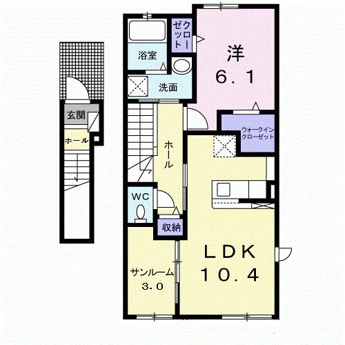 | 間取り詳細 | 洋室6.1 LDK10.4 | 専有面積 | 51.64㎡ | ||
