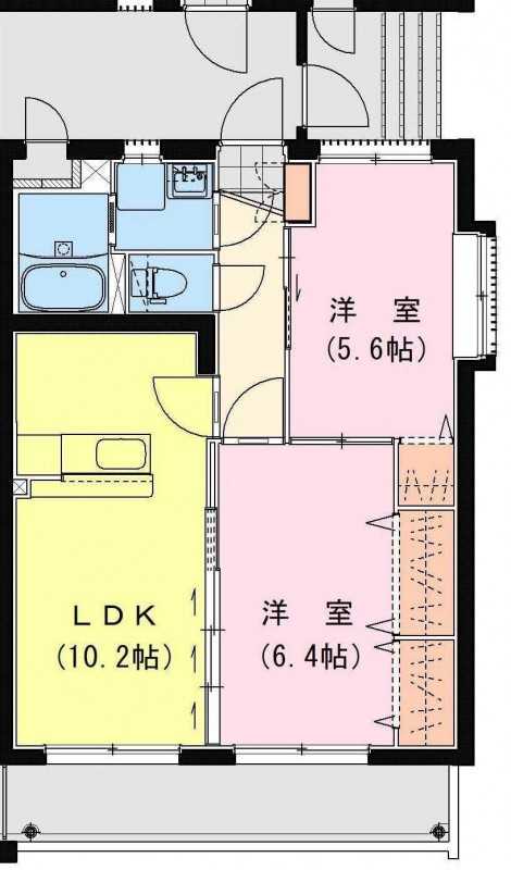 | 間取り詳細 | LDK10.2 洋室6.4 洋室5.6 | 専有面積 | 50.84㎡ | ||