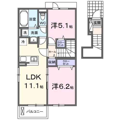 | 間取り詳細 | 洋室6.2 洋室5.1 LDK11.1 | 専有面積 | 54.02㎡ | ||